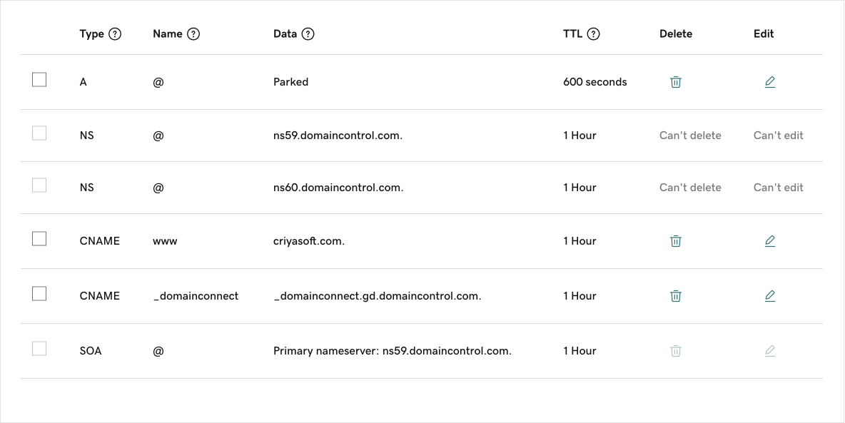 And if you notice, the “A” and “CNAME” records we are trying to update are already created by Godaddy.