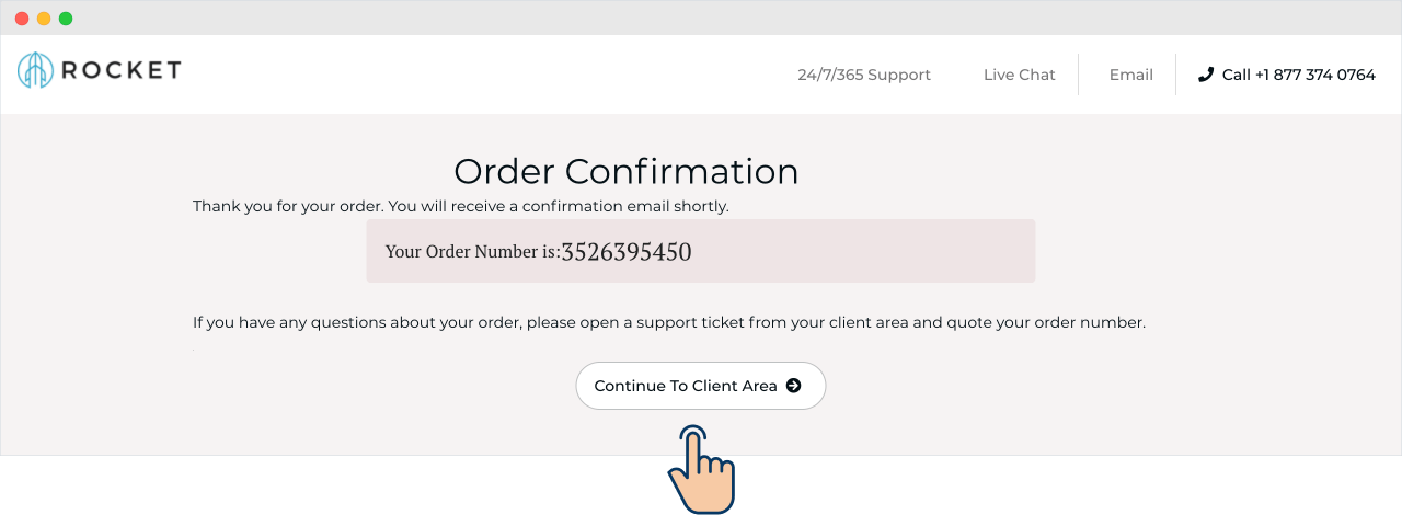 Next, click on the “Continue to Client Area” button to start creating our WordPress site.